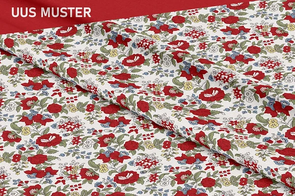 Care instructions: Hand wash or delicate cycle max 40°C. Low spin max 400 rpm. Use phosphate‑free detergent. Do not bleach. Do not spot‑clean or rub wet prints. Air‑dry only (no tumble dry). Iron cotton setting max 200°C. Fully printed fabrics: iron from the reverse side.