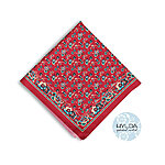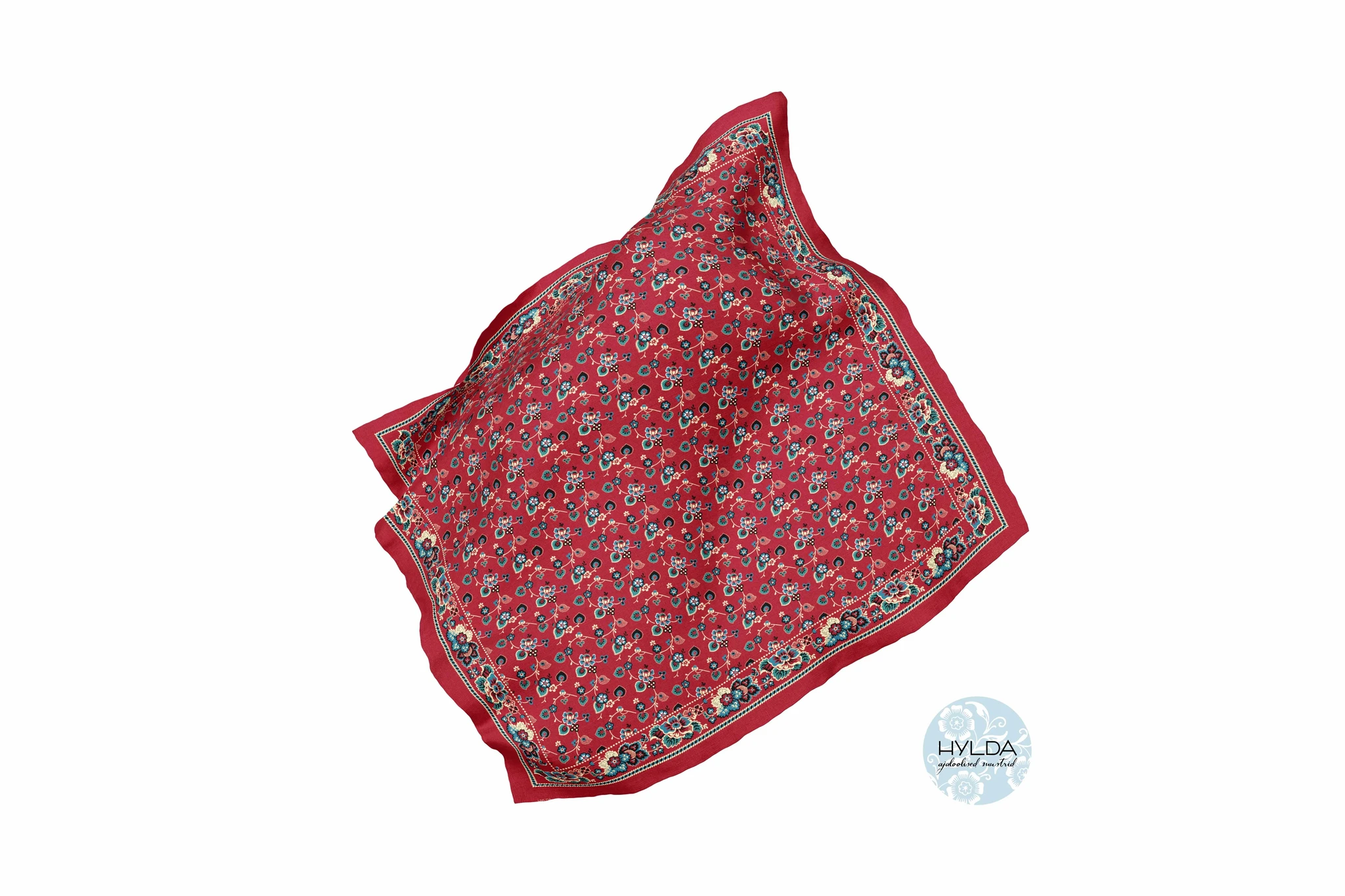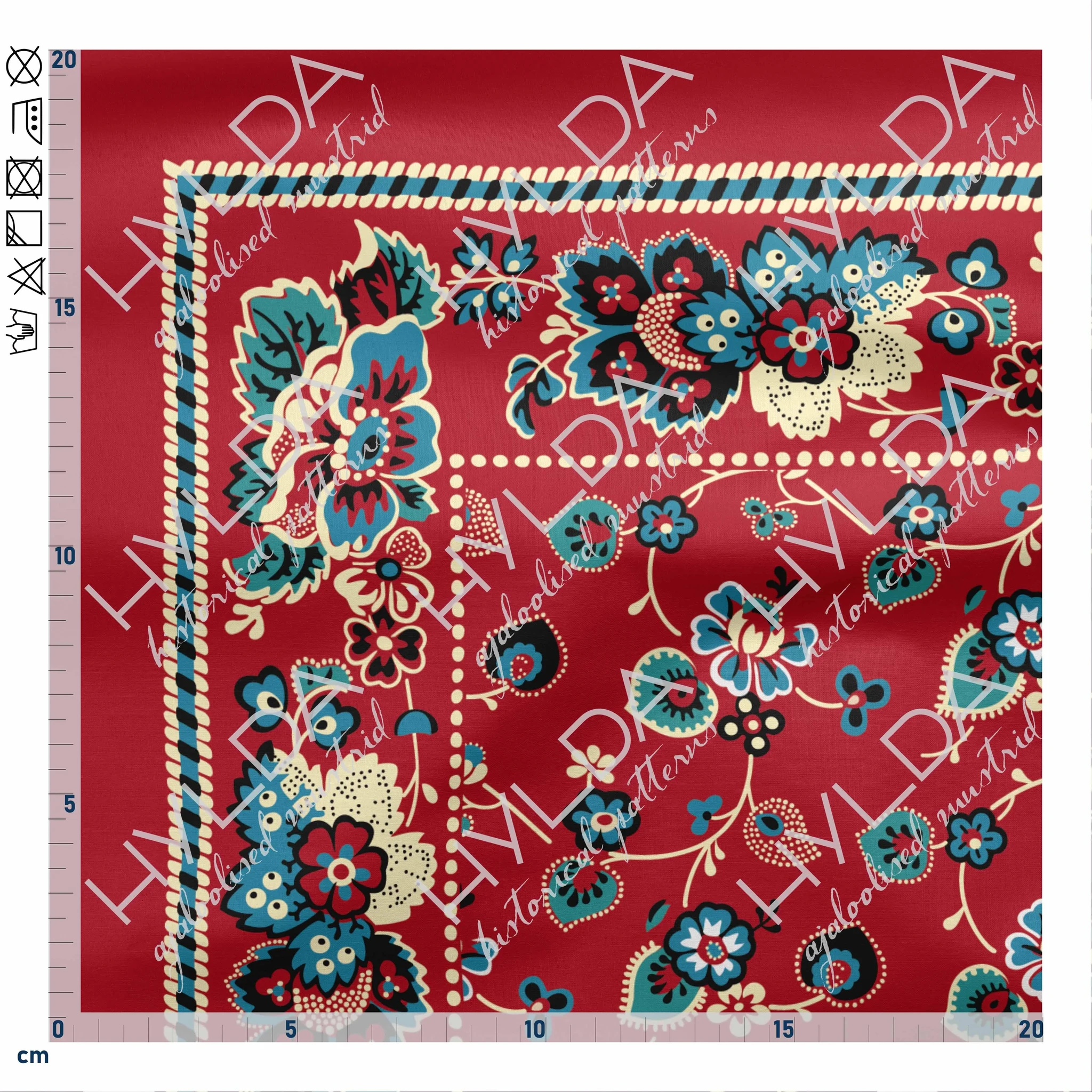 Compared to the original pattern, the kerchief is larger, and pattern repetitions have been added. The test print also contains white motifs, which are referenced in the description, but the original item does not have them.