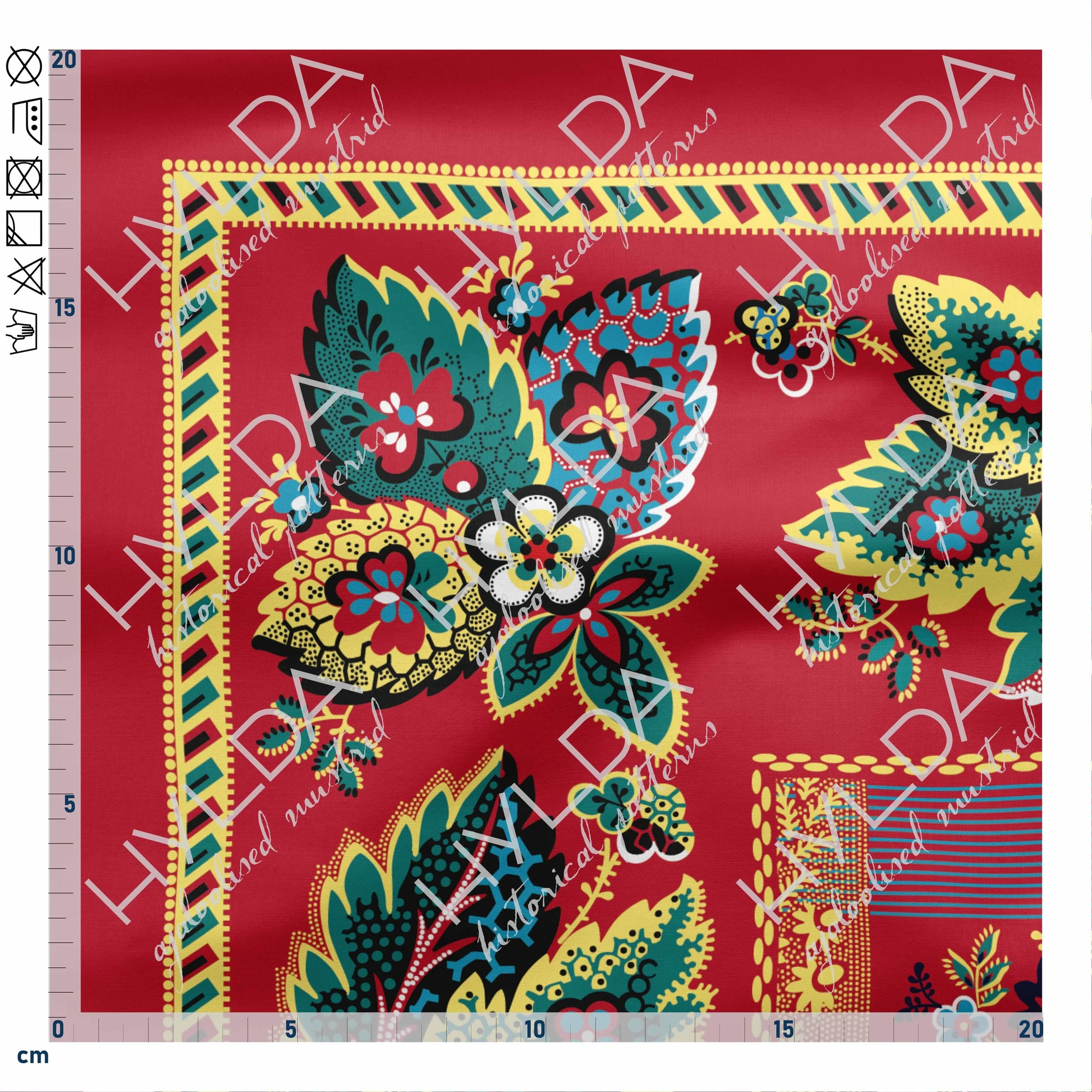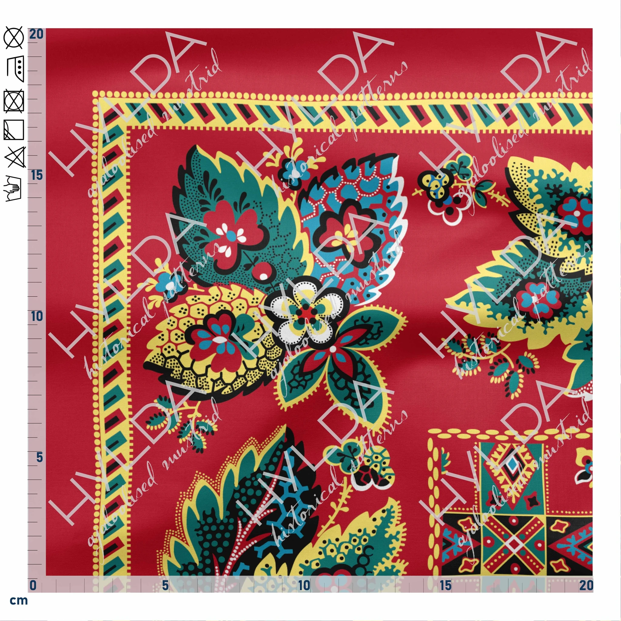 Care instructions: Delicate wash max 40°C, spin at low speed (400 rpm). Use phosphate-free detergents. Do not bleach. Avoid spot-cleaning and rubbing wet prints, as it may cause damage. Dry the fabrics in an airy room or outside, avoid tumble drying. Iron on cotton temperature (200°C), fabrics with fully printed colours from the wrong side.