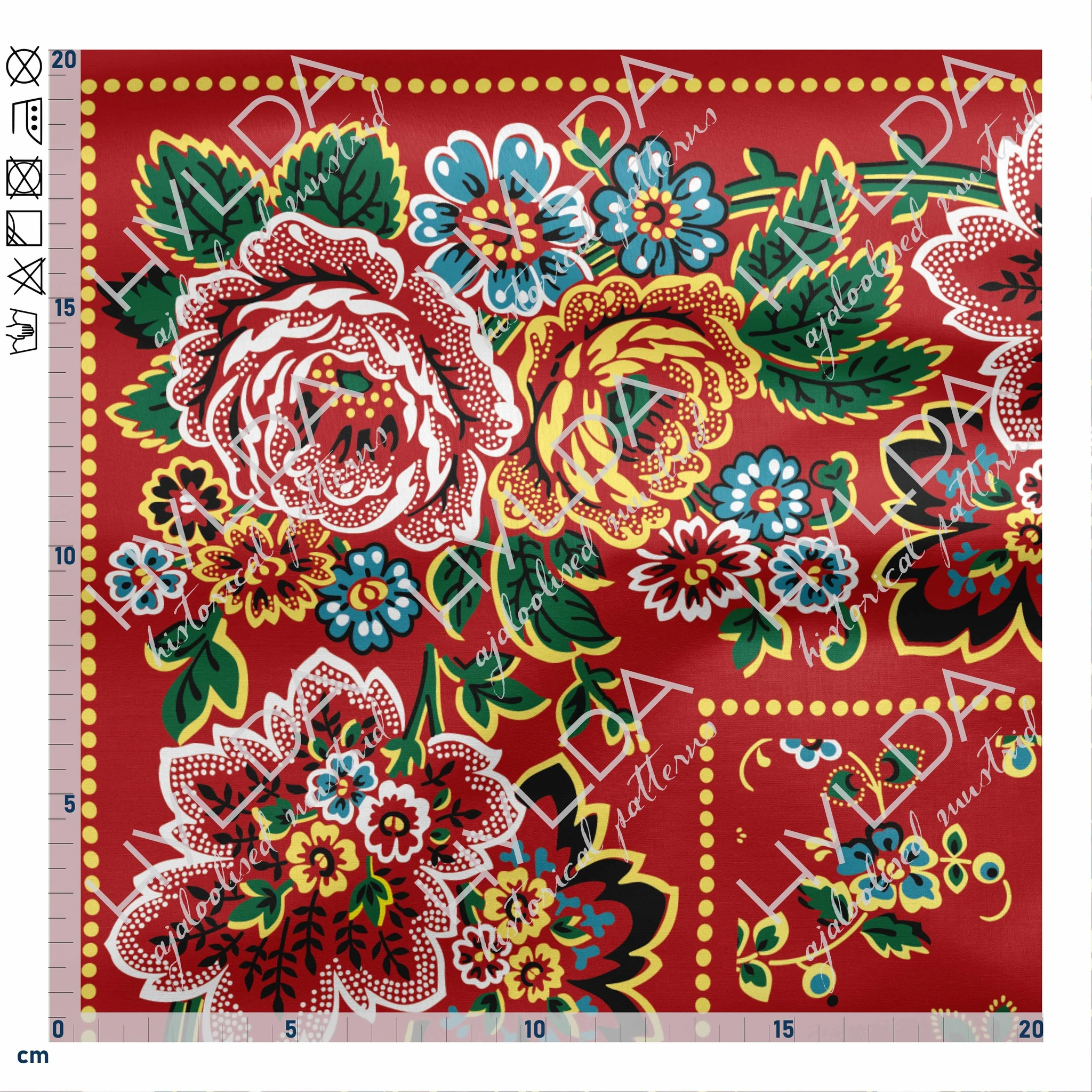 Hooldusjuhis: Käsipesu või õrnpesu max 40°C, tsentrifuugida max 400 p/min. Kasutada fosfaadivaba pesuvahendit. Mitte pleegitada. Vältida kanga hõõrumist märjalt. Kuivatada õhu käes. vältida trummelkuivatit. Triikida puuvillarežiimil max 200°C. Täistrükiga kangaid triikida pahemalt poolt.